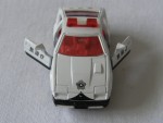 | Massstab | 1:60 |  durchsichtige Scheiben, rotes Interieur und schwarze Stossstange-Bodenplatte-Einheit. Zweifarbenlackierung. Zu öffnende Türen. Rückspiegel in Wagenfarbe an der A-Säule angebracht. Einsatzfahrzeug der Japanischen Polizei mit roter, eckiger Lichtbar auf dem Dach und schwarzem Präfektur-Hinweis auf der Motorhaube, den Seiten und der Heckklappe. Kolorierte Rückleuchten. Gold-chrom 5-Steg-Felgen mit Hartplastikräder. Fahrzeug aus der regulären Serie