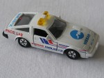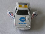 | Massstab | 1:60 |  durchsichtige Scheiben, schwarzes Interieur und Stossstange-Bodenplatte-Einheit, vordere Stossstange weiss. Zu öffnende Türen. Rückspiegel in Wagenfarbe an der A-Säule angebracht. Auf der Motorhaube den hellblauen Aufdruck "SW Nissan Dunlop". Auf den Seiten dunkelblau-rote Streifen und die blau-roten Aufdrucke "Pace-Car Nissan Fairlady Z Dunlop". Auf dem Dach eine orange, eckige Lichtbar. Auf der Heckklappe den hellblauen Aufdruck "Fairlady Z". Kolorierte Rücklichter. Chrom-5-Steg-Felgen mit Hartplastikräder. Fahrzeug aus der Museums-Serie