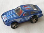 | Massstab | 1:60 |  durchsichtige Scheiben, rotes Interieur und schwarze Stossstangen. Rückspiegel in Wagenfarbe an der A-Säule montiert. Auf der Motorhaube blau-weisse Streifen und den Aufdruck des "Nissan"-Logos und in schwarz "300 ZX" auf der Frontstossstange und am Heck. Auf den Seiten ein weiss-blauer Streifen und den blauen Aufdruck "Nissan". Auf dem Dach den Aufdruck des Firmenlogos "Nissan". Kolorierte Lichter, bei offenen Klappscheinwerfern. Chrom-5-Steg-Felgen mit Gummi-Reifen und Pull-Back-Antrieb. Fahrzeug für die Darda-Down-Hill-Rennbahn
