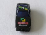 | Massstab | 1:60 |  dunkelblaue, nicht durchsichtige Scheiben. Schwarze, vernietete Kunststoffbodenplatte-Hintere-Stossstange-Einheit. Auf der Motorhaube gelb-grüne Winkelaufdrucke sowie ein rot-weisser Querbalken mit dem Aufdruck "Michele" und zusätzlichem weissem Aufdruck "Alboreto". Auf dem Dach grün-gelbe Querstreifen sowie die weisse Startnummer 1. Schwarze 5-Steg-Felgen mit Hartplastikräder. Sehr einfaches Kinderspielzeug als Die-Cast