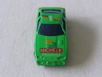 | Massstab | 1:60 |  dunkelblaue, nicht durchsichtige Scheiben. Schwarze, vernietete Kunststoffbodenplatte-Hintere-Stossstange-Einheit. Auf der Motorhaube gelb-grüne Winkelaufdrucke sowie ein rot-weisser Querbalken mit dem Aufdruck "Michele" und zusätzlichem weissem Aufdruck "Alboreto". Auf dem Dach grün-gelbe Querstreifen sowie die weisse Startnummer 1. Schwarze 5-Steg-Felgen mit Chromzierring und Hartplastikräder. Sehr einfaches Kinderspielzeug als Die-Cast