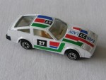 | Massstab | 1:60 |  durchsichtige Scheiben, cremefarbenes Linkslenker-Interieur. Schwarze, vernietete Kunststoff-Bodenplatte-Heckstossstange-Einheit. Auf dem ganzen Auto rot-blau-grüne Streifen und die schwarz-weisse Startnummer 27. Auf der Motorhaube den blauen Aufdruck "Fairlady". Kolorierte Heckleuchte. Chrom-6-Steg-Felgen mit Zierring und Hartplastikräder. Einfaches Kinderspielzeug als Die-Cast