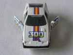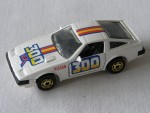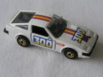 | Massstab | 1:60 |  durchsichtige Scheiben, schwarzes Linkslenker-Interieur, Stossstangen und angedeutete Targa-Dächer. Rückspiegel in Wagenfarbe an der A-Säule montiert. Zu öffnende Türen. Vernietete Metallbodenplatte in weiss. Auf der Motorhaube und dem Dach rot-gelb-blaue Streifen mit dem weiss-blau-rot-goldenen Aufdruck "300 ZX". Auf den Seiten blau-rot-goldener Aufdruck "300 Nissan". Auf der Hutablage liegen Tennisschläger. Gold-Chrom-6-Steg-Felgen mit Hartplastikräder. Fahrzeug aus der Speed Fleet Blackwall Serie