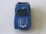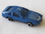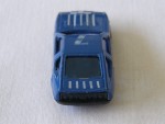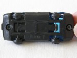 dunkelblaue, nicht durchsichtige Scheiben. Schwarze, vernietete Plastik-Bodengruppe-Stossstangen-Einheit. Auf der Motorhaube dem Dach und der Heckklappe weisse Streifen und Punkte sowie die weisse Startnummer 7 auf dem Dach. Schwarze Scheibenräder mit Chromzierring und Hartplastikräder. Sehr einfaches Kinderspielzeug als Die-Cast |