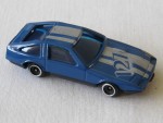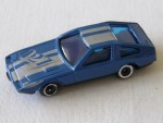 dunkelblaue, nicht durchsichtige Scheiben. Schwarze, vernietete Plastik-Bodengruppe-Stossstangen-Einheit. Auf der Motorhaube und dem Dach silberne Streifen und die silberne Startnummer 127 auf der Motorhaube. Schwarze Scheibenräder mit Chromzierring und Hartplastikräder. Sehr einfaches Kinderspielzeug als Die-Cast |