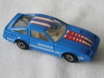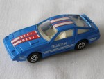 | Massstab | 1:58 |  durchsichtige Scheiben, weisses Linkslenker-Interieur. Schwarze, vernietete Kunststoff-Bodenplatte. Auf der Motorhaube und dem Dach ein rot-weisser Streifen. Auf den Seiten ein weisser Streifen und den weissen Aufdruck "300 ZX". Chrom-5-Steg-Felgen mit angedeuteten Radschrauben und Hartplastikräder. Fahrzeug auf der Basis und gebaut von May Cheong Groupe