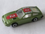 | Massstab | 1:60 |  durchsichtige Scheiben, weisses Linkslenker-Interieur. Schwarze, vernietete Kunststoff-Bodenplatte-Heckstossstange-Einheit. Auf der Motorhaube und dem Dach rot-weiss-schwarze Streifen und ein schwarzer Aufdruck "300 ZX" auf dem Dach und die weiss-schwarze Startnummer 2 auf der Motorhaube und dem Dach. Schwarze Lufthutze auf der Motorhaube. Chrom-8-Steg-Felgen mit Zierring und Hartplastikräder. Einfaches Kinderspielzeug als Die-Cast
