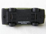 durchsichtige Scheiben, graues Linkslenker-Interieur. Schwarze, vernietete Kunststoff-Bodenplatte-Heckstossstange-Einheit. Chrom-4-Steg-Felgen mit Zierring und Hartplastikräder. Einfaches Kinderspielzeug als Die-Cast |