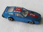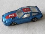 | Massstab | 1:60 |  durchsichtige Scheiben, weisses Linkslenker-Interieur. Schwarze, vernietete Kunststoff-Bodenplatte-Heckstossstange-Einheit. Auf der Motorhaube und dem Dach rot-weiss-schwarze Streifen und ein schwarzer Aufdruck "300 ZX" auf dem Dach und die blau-schwarze Startnummer 2 auf der Motorhaube und dem Dach. Schwarze Lufthutze auf der Motorhaube. Chrom-8-Steg-Felgen mit Zierring und Hartplastikräder. Einfaches Kinderspielzeug als Die-Cast