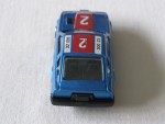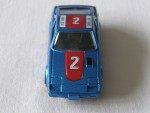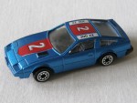 | Massstab | 1:60 |  durchsichtige Scheiben, schwarzes Linkslenker-Interieur. Schwarze, vernietete Kunststoff-Bodenplatte-Heckstossstange-Einheit. Auf der Motorhaube und dem Dach rot-weiss-schwarze Streifen und ein schwarzer Aufdruck "300 ZX" auf dem Dach und die blau-schwarze Startnummer 2 auf der Motorhaube und dem Dach. Schwarze Lufthutze auf der Motorhaube. Chrom-8-Steg-Felgen mit Zierring und Hartplastikräder. Einfaches Kinderspielzeug als Die-Cast