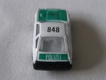 | Massstab | 1:60 |  durchsichtige Scheiben, weisses Linkslenker-Interieur. Schwarze, vernietete Kunststoff-Bodenplatte-Heckstossstange-Einheit. Auf der Motorhaube und der Heckklappe grüner Streifen. Zusätzlich auf der Motorhaube ein Hoheitszeichen. Auf dem Dach den schwarzen Aufdruck "848" und auf der Heckklappe den weissen Aufdruck "Polizei". Schwarze 5-Steg-Felgen mit Hartplastikräder. Einfaches Kinderspielzeug als Die-Cast. Leicht bespielt aber komplett