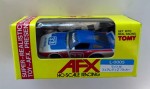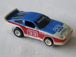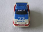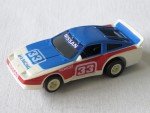 | Massstab | 1:60 |  schwarze, nicht durchsichtige Scheiben. Rückspiegel in Wagenfarbe an der A-Säule angebracht. Weiss-blauer, aufgesetzter Heckspoiler. Ausladende Kotflügelverbreiterungen. Auf der blau-weissen Motorhaube die weisse Startnummer 33 und blauem Aufdruck "AFX Racing". Auf der Frontscheibe und der vorderen Stossstange den weissen Aufdruck "Nissan". Auf den Seiten rote Streifen mit der legendären weissen Startnummer 33 und Werbeaufdruck von "Monroe", dem US-IMSA-Bob-Sharp-Racing-Teams nachempfundenes Rennfahrzeug. Kolorierte Rückleuchten mit dem weiss-schwarzen Aufdruck "Nissan 300 ZX Turbo". Weisse 5-Steg-Felgen mit Weichgummi-Reifen. Fahrzeug für die H-0 Slot-Rennbahn, samt Motor