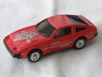 | Massstab | 1:45 |  schwarze, nicht durchsichtige Scheiben, verschraubte Bodenplatte-Stossstangen-Einheit. Über dem ganzen Auto feine weisse Streifen und auf der Motorhaube den silber-weissen Aufdruck "300 ZX". Auf den Seiten den weissen Aufdruck "Turbo 300 ZX". Kolorierte Rückleuchten. Chrom-5-Steg-Felgen mit Profilgummi-Reifen und Pull-Back-Antrieb. Einfaches aber gut proportioniertes Die-Cast. Fahrzeug auf der Basis und gebaut von May Cheong Groupe