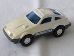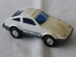 | Massstab | 1:44 |  blaue, nicht duchsichtige Scheiben. Verschraubte, graue Bodengruppe-Stossstangen-Einheit. Auf den Seiten weiss-blauer Aufkleber mit Aufdruck "Twin Cam Turbo". Im Heck ein weiterer Aufkleber als Rückleuchten. Einfaches Kinderspielzeug-Kunststoffmodel. Chrom-Felgen im Strahlendesign mit Hartplastikräder. Set mit 4 verschiedenfarbigen ZX auf einem LKW-Autotransporter