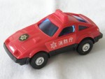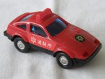 | Massstab | 1:44 |  blaue, nicht duchsichtige Scheiben. Verschraubte, schwarze Bodengruppe-Stossstangen-Einheit. Auf den Seiten rot-weisser Aufkleber mit Hoheitszeichen der Japanischen Feuerwehr. Auf der Motorhaube ein schwarz-goldener Aufkleber mit Hoheitszeichen. Im Heck ein weiterer Aufkleber als Rückleuchten. Auf dem Dach eine rote Lichtbar. Einfaches Kinderspielzeug-Kunststoffmodel. Chrom-Felgen im Strahlendesign mit Hartplastikräder. Einsatzleiter-Fahrzeug der Japanischen Feuerwehr