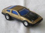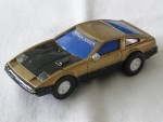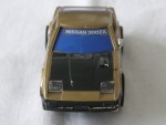 | Massstab | 1:43 |  hellblaue, nicht duchsichtige Scheiben. Schwarze, Kunststoff Stossstangen-Bodengruppe-Einheit verschraubt, Motorhaube und geschlossene Scheinwerferabdeckungen. Chrom-Rückspiegel an der A-Säule angebracht (rechts fehlt). Auf der Frontscheibe ein blau-weisser Aufkleber mit dem Aufdruck "Nissan 300 ZX". Kolorierte Lichter während der Fahrt. Chrom-5-Steg-Felgen mit Weichgummi-Reifen. Fahrzeug für die Slot-Rennbahn, samt Motor. Fahrzeug ohne Rennbahn