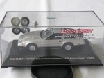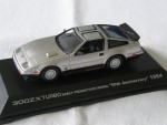 | Massstab | 1:43 |  durchsichtige Scheiben, schwarzes 2-Sitzer-Linkslenker Interieur, Scheibenrahmen, Rückspiegel an der A-Säule angebracht, Bodengruppe, Scheibenwischer, Heckspoiler und Türgriffe. Zweifarbenlackierung. Silberne Targa-Dächer und Doppelrohrauspuff. Auf den Seiten den goldenen Aufdruck "Turbo". Kolorierte Lichter. Silberne Original-Felgen mit Profilgummi-Reifen. Als Zusatzausrüstung ein Satz silberne 5-Steg-Felgen mit Profilgummi-Reifen und Einrohrauspuff. Fahrzeug steht auf einem Display-Sockel mit Turbo-Motorensound im Fahrbetrieb. Sehr detaillierte Super Sound Street-Stock Serie. Dieses Auto wurde im Original ausschliesslich in den USA zum 50 jährigen Firmenjubiläum von Nissan als Turbo-Targa in dieser Sonderlackierung und Plakette angeboten