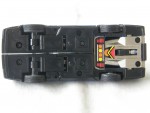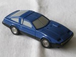 silberne, nicht durchsichtige Scheiben. Schwarze, verschraubte Bodengruppe-Stossstangen-Einheit. Kolorierte Rücklichter. Chrom-5-Steg-Felgen mit Hartplastikräder. Kann als Roboter geformt werden |