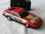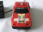 | Massstab | 1:35 |  schwarze, nicht durchsichtige Scheiben und Stossstangen-Bodengruppe-Einheit. Auf der Motorhaube rot-silber-gelb-schwarzer Aufkleber mit der Aufschrift "Pace-Car" und die schwarze Startnummer 659. Auf der Frontscheibe ein weiss-schwarz-roter Aufkleber mit dem Aufdruck "Fairlady Z". Auf den Seiten ein silber-gelb-schwazer Aufkleber mit der Aufschrift "Pace Car 4 WD Super". Auf  dem Dach eine rote aufklappbare Lichtbar. Kolorierte Lichter. Batteriebetriebenes Kabelfernsteuermodel. Lenkbare, Chrom-Original-Felgen mit Gummi-Reifen