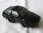 | Massstab | 1:34 |  graue, nicht durchsichtige Scheiben, Rückspiegel an der A-Säule angebracht, Fensterrahmen, Kotschutzlappen und Türgriffe mit verzerrter Karosserie. Auf der Frontscheibe ein weisser Aufdruck "Fairlady Z". Kolorierte Lichter. Strassenfahrzeug für den Japanischen Markt. Schwarze 8-Steg-Felgen mit Profilgummi-Reifen und Pull-Back-Antrieb. Fahrzeug aus einem 9-teiligen Set dieses Fahrzeugs mit Originalfarben
