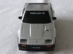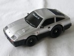 | Massstab | 1:34 |  schwarze, nicht durchsichtige Scheiben, Rückspiegel an der A-Säule angebracht, Fensterrahmen, Kotschutzlappen und Türgriffe mit verzerrter Karosserie. Zweifarbenlackierung. Auf der Frontscheibe ein weisser Aufdruck "Fairlady Z". Kolorierte Lichter. Strassenfahrzeug für den Japanischen Markt. Silberne 8-Steg-Felgen mit Profilgummi-Reifen und Pull-Back-Antrieb. Fahrzeug aus einem 9-teiligen Set dieses Fahrzeugs mit Originalfarben