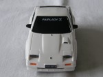 | Massstab | 1:34 |  schwarze, nicht durchsichtige Scheiben, Rückspiegel an der A-Säule angebracht, Fensterrahmen, Kotschutzlappen und Türgriffe mit verzerrter Karosserie. Auf der Frontscheibe ein weisser Aufdruck "Fairlady Z". Kolorierte Lichter. Strassenfahrzeug für den Japanischen Markt. Silberne 12-Steg-Felgen mit Profilgummi-Reifen und Pull-Back-Antrieb. Fahrzeug aus einem 9-teiligen Set dieses Fahrzeugs mit Originalfarben