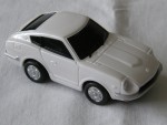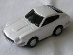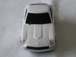 schwarze, nicht durchsichtige Scheiben, Kühlergrill und Scheibenwischer, mit verzerrter Karosserie. Silberne Stossstangen. Kolorierte Lichter. Silberne 5-Steg-Felgen mit Profilgummi-Reifen und Pull-Back-Antrieb. Kunststoffmodell |