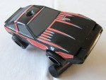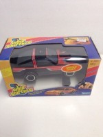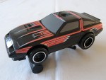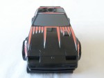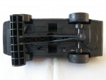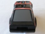 graue, nicht durchsichtige Scheiben und angedeutete Targa-Dächer. Über dem ganzen Auto rot-weisse Streifen. Auf dem Dach die Öffnung für die Aktion. Fahrzeug ist auf einem beweglichen Ständer montiert. Schwarze 4-Steg-Felgen mit Hartplastikräder |