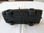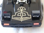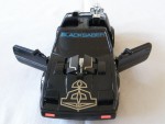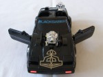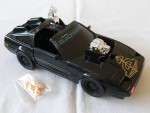 | Massstab | 1:19 |  schwarze, nicht durchsichtige Scheiben und offene Targa-Dächer mit schwarzem 2-Sitzer-Rechtslenker-Interieur und zu öffnenden Türen. Rückspiegel in Wagenfarbe an der A-Säule angebracht. Motorhaube mit aufklappbarer Öffnung aus der ein verchromter Raketenwerfer rauskommt mit 6 zusätzlichen Granaten als Beilage. Auf der Motorhaube goldene Streifen als Figur. Ausklappbare Scheinwerfer. Auf der Frontscheibe den blauen Aufdruck "Black Saber". Auf dem Dach eine verchromte Cyber-Antenne. Kolorierte Lichter. Schwarze 12-Steg-Felgen, hinten mit ausfahrbarer Killerscheibe und Gummi-Reifen. Fahrzeug ist die Antwort Japans auf das Filmauto "KITT"