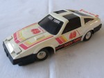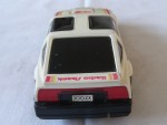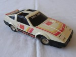 | Massstab | 1:18 |  schwarze, nicht durchsichtige Scheiben, inklusive Targa-Dächer und Stossstange-Bodengruppe-Einheit. Aufklappbare Klappscheinwerfer. Auf der Motorhaube rot-orange-gelbe Aufkleber mit dem roten Aufdruck "ZX Racing" und der roten Startnummer 49. Auf der Frontscheibe den weiss-schwarzen Aufkleber mit dem Aufdruck "300 ZX Turbo". Auf den Seiten rot-orange-gelbe Streifen mit den rot-orangen Aufdrucken "Nissan 300 ZX Turbo" und der roten Startnummer 49. Auf dem Heckspoiler in Wagenfarbe den Aufkleber mit rot-orange-gelben Streifen und dem roten Aufdruck "Radio Shack". Kolorierte Rücklichter. Batteriebetriebenes Funkfernsteuer Fahrzeug mit Funkantenne hinten rechts (fehlt). Weisse 4-Steg-Felgen mit schwarzen Profilgummi-Reifen und lenkbare Vorderräder. Es fehlt zudem die Batteriefach-Abdeckung und die Funktion ist nicht geprüft