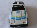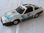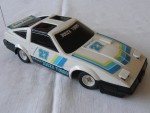 | Massstab | 1:18 |  schwarze, nicht durchsichtige Scheiben, inklusive Targa-Dächer und Stossstange-Bodengruppe-Einheit. Aufklappbare Klappscheinwerfer. Auf der Motorhaube blau-hellblau-gelben Aufkleber mit dem blauen Aufdruck "ZX Racing" und der blauen Startnummer 27. Auf der Frontscheibe den weiss-schwarzen Aufkleber mit dem Aufdruck "300 ZX Turbo". Auf den Seiten blau-hellblau-gelbe Streifen mit den blauen Aufdrucken "Nissan 300 ZX Turbo" und der blauen Startnummer 27. Auf dem Heckspoiler in Wagenfarbe den Aufkleber mit blau-hellblau-gelben Streifen und dem blauen Aufdruck "Radio Shack". Kolorierte Rücklichter. Batteriebetriebenes Funkfernsteuer Fahrzeug mit Funkantenne hinten rechts. Weisse 4-Steg-Felgen mit schwarzen Profilgummi-Reifen und lenkbare Vorderräder. Es fehlt die Batteriefach-Abdeckung und die Funktion ist nicht geprüft