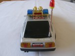 | Massstab | 1:16 |  schwarze, nicht durchsichtige Scheiben, Doppelrohrauspuff und Stossstange-Bodengruppe-Einheit. Rückspiegel, an der A-Säule angebracht und aufgesetzter Heckspoiler in Wagenfarbe. Aufklappbare, schwarze Klappscheinwerfer. Auf der Motorhaube ein schwarz-weiss-roter Aufkleber mit der Aufschrift "PD Police Fairlady ZX" und die rot-weisse Startnummer 33. Auf der Frontscheibe ein goldener Aufdruck "300 ZX". Auf den Seiten ein schwarz-weiss-roter Aufkleber mit dem Aufdruck "P D Nissan" und die Startnummer 33. Auf dem Dach eine blau-goldene Lichtbar mit Lautsprechern. Aus der Heckscheibe ragt ein weiteres rotes Drehlicht an Schwanenhalsantenne. Auf dem Heckspoiler den weissen Aufkleber mit dem Aufdruck "High-Way-Patrol" und als Nummernschild den schwarz-weiss-roten Aufdruck "Nissan Fairlady 300 ZX". Kolorierte Lichter. Batteriebetriebenes Fahrzeug mit Anstossmotor. Graue Turbo-Felgen mit Hartplastikräder