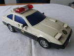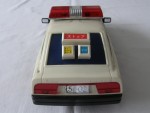 | Massstab | 1:14 |  blaue, nicht durchsichtige Scheiben mit angedeuteten Targa-Dächer. Schwarze Stossstangen-Bodengruppe-Einheit und Rückspiegel, an der A-Säule angebracht. Aufklappbare Klappscheinwerfer. Einsatzfahrzeug der Japanischen Polizei mit roter Lichtbar auf dem Dach und schwarz-goldene Hoheitszeichen auf der Motorhaube und den Seiten. Aus der Heckscheibe ragen 3 Tasten für die Aktion. Als Nummernschild die Chrom-Plakette mit dem Aufdruck "51-02". Kolorierte Lichter. Batteriebetriebenes Fahrzeug mit Anstossmotor. Chrom-5-Steg-Felgen mit Hartplastikräder. Leichte Gebrauchsspuren aber komplett. Funktion ist nicht überprüft