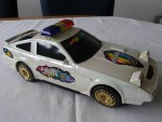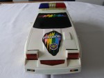 | Massstab | 1:13 |  schwarze, nicht durchsichtige Scheiben. Rückspiegel in Wagenfarbe an der A-Säule angebracht. Aufgesetzter Heckspoiler und aufklappbare Klappscheinwerfer. Auf dem ganzen Auto verteilt schwarz-weiss-mehrfarbige Aufkleber mit den Aufdrucken "Emergency Patrol Turbo". Auf der Motorhaube ein rotes "Scanner-Licht" (wie KITT). Auf dem Dach eine rot-blaue Lichtbar. Als Nummernschild den schwarz-weissen Aufkleber mit der Nummer ZH-9928. Kolorierte Lichter. Batteriebetriebenes Fahrzeug mit Anstossmotor. Gold-Chrom-Turbo-Felgen mit Hartplastikräder