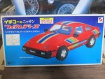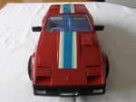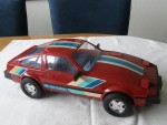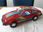 | Massstab | 1:10 |  bläuliche, durchsichtige Scheiben, einfaches aus Blech gefertigtes Interieur mit hellblauem Steuerrad. Schwarze Rückspiegel an der A-Säule angebracht und Stossstangen. Aufklappbare Klappscheinwerfer. Auf der Motorhaube und dem Dach blau-grün-orange Streifen. Auf den Seiten blau-grün-orange Streifenaufkleber mit dem weissen Aufdruck "V 6 3.0 Turbo" und schwarzer Stossschutzleiste. Fahrzeug ist teils in Blech und Kunststoff zusammengefügt. Karosserie Kunststoff und Unterbau aus gepresstem Weissblech. Kolorierte Lichter. Chrom-4-Steg-Felgen mit Hartplastikräder und Schwungrad-Antrieb