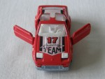 | Massstab | 1:62 |  durchsichtige Scheiben, offene Targa-Dächer und weisses Linkslenker-Interieur. Zu öffnende Türen und weisse, bewegliche Klappscheinwerfer. Vernietete farblose Metall-Bodenplatte. Auf der Motorhaube und dem Dach weiss-schwarze Streifen und auf der Motorhaube den schwarzen Aufdruck "Racing Team" und die rot-schwarze Startnummer 17. Kolorierte Rückleuchten. Chrom-8-Loch-Felgen mit Hartplastikräder