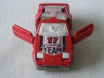 | Massstab | 1:62 |  durchsichtige Scheiben, offene Targa-Dächer und weisses Linkslenker-Interieur. Zu öffnende Türen und weisse, bewegliche Klappscheinwerfer. Vernietete farblose Metall-Bodenplatte. Auf der Motorhaube und dem Dach weiss-schwarze Streifen und auf der Motorhaube den schwarzen Aufdruck "Racing Team" und die rot-schwarze Startnummer 17. Kolorierte Rückleuchten. Chrom-4-Steg-Felgen mit Zierring und Hartplastikräder