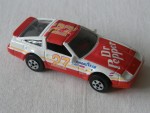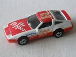 | Massstab | 1:62 |  durchsichtige Scheiben, angedeutete Targa-Dächer und schwarzes Linkslenker-Interieur. Zweifarbenlackierung. Rote, vernietete Kunststoff-Bodenplatte. Rückspiegel in Wagenfarbe an der A-Säule angebracht. Auf der roten Motorhaube den weissen Aufdruck "Dr. Pepper". Auf den Seiten die gelbe Startnummer 27 und Werbeaufdrucke wie "Good-Year". Auf dem Dach die gelbe Startnummer 27. Chrom-5-Steg-Felgen mit Hartplastikräder