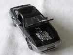 durchsichtige Scheiben, schwarzes 2 by 2 Sitzer-Interieur. Zweifarbenlackierung. Zu öffnende Türen, Motorhaube mit Motorapplikation, Heckklappe und aufklappbare Klappscheinwerfer. Rückspiegel in Wagenfarbe an der A-Säule angebracht. Kolorierte Rücklichter. Chrom-5-Steg-Felgen mit Profilgummi-Reifen. Standartmodel |