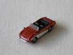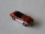 4-sitziges offenes Convertible mit schwarzem Interieur, aufgesetzten Seitenspiegel auf den Kotflügeln in Wagenfarbe. Zweifarbige Karosserie mit silbernen Elementen beim Kühlergrill, den Stossstangen und den Schweinwerfern. Erster eigener Sportwagen der Marke Datsun. Grau-schwarze Hartplastikräder |