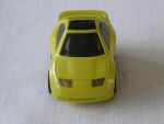 schwarze, nicht durchsichtige Scheiben, inklusive Targa-Dächer und Heckblende. Aufgesetzter Heckspoiler in Wagenfarbe. Auf der gelben Heckplatte den schwarz-weissen Aufdruck "Nissan Fairlady Z 300 ZX no 18". Durchsichtige Scheinwerfer. Chrom-5-Steg-Felgen mit Gummi-Reifen und Pull-Back-Antrieb |