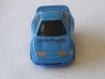 | Massstab | 1:87 |  schwarze, nicht durchsichtige Scheiben mit angedeuteten Targa-Dächer. Aufgesetzter Heckspoiler in Wagenfarbe. Blaue Bodenplatte und goldene Scheinwerfer. Auf der Motorhaube ein violetter Aufkleber mit Japanischem Text. Auf der blauen Heckplatte ein hellblau-rot-weisser Aufkleber mit einem Schloss und Japanischem Text. Chrom-5-Steg-Felgen mit Gummi-Reifen und Pull-Back-Antrieb