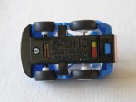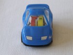 durchsichtig Scheiben, ohne Interieur und angedeutete Targa-Dächer. Aufgesetzter Heckspoiler in Wagenfarbe. Silberne Scheinwerfer. Auf der schwarzen Heckplatte den rot-weissen Aufkleber mit dem Aufdruck "Choro Q Special Model". Weisse 5-Steg-Felgen mit Gummi-Reifen und Pull-Back-Antrieb |