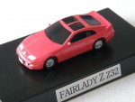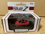 schwarze, nicht durchsichtige Scheiben, inklusive Targa-Dächer und Heckblende. Rückspiegel in Wagenfarbe an der A-Säule angebracht. Kolorierte Lichter. Silberne 5-Steg-Original-LM-Felgen mit schwarzen, feststehenden Rädern. Fahrzeug aus der SEGA-Fairlady Z Serie auf schwarzem Sockel montiert, ohne bewegliche Teile |
