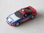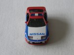 | Massstab | 1:72 |  durchsichtige Scheiben, schwarzes Interieur, B-Säule, Frontstossstange, Heckblende und Scheibenrahmen. Aufgesetzter Heckspoiler und Rückspiegel in Wagenfarbe an der A-Säule angebracht. 3-Farbenlackierung. Dem Fuji-Speedway-Pace-Car nachempfunden. Auf der Motorhaube und den Seiten die weiss-blauen Aufdrucke "Nissan Dunlop". Auf dem Dach eine blaue Lichtbar. Kolorierte Lichter. Silberne Original-5-Steg-Felgen mit Profilgummi-Reifen. Fahrzeug aus der Real-X-Serie