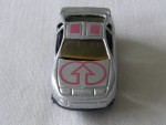 | Massstab | 1:65 |  gelbliche, nicht durchsichtige Scheiben und angedeutete, pinke Targa-Dächer. Aufgesetzter Heckspoiler in Wagenfarbe. Schwarze, vernietete Kunststoff-Bodenplatte-Heckblende-Einheit. Auf der Motorhaube ein pinker Kreis-Pfeil-Aufdruck. Chrom-8-Steg-Felgen mit Zierring und Hartplastikräder. Sehr einfaches Kinderspielzeug als Die-Cast