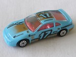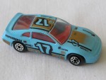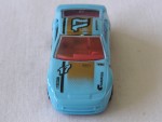 | Massstab | 1:60 |  durchsichtige Scheiben und angedeutete Targa-Dächer. Rotes Linkslenker-Interieur. Farblose, vernietete Metallbodenplatte. Aufgesetzter Heckspoiler in Wagenfarbe. Kunststoffkarosserie. Auf dem ganzen Auto gold-schwarze Streifen und die hellblau-schwarze Startnummer 17 und diverse Werbeaufdrucke. Chrom-8-Loch-Felgen mit Hartplastikräder. Identisches Modell siehe auch unter Majorette Super Crystal Serie, aber mit schwarzem Interieur