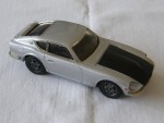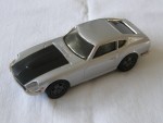 durchsichtige Scheiben, schwarzes Interieur, Motorhaube, Kühlergrill und Heckblende. Schweres Handarbeitsmodell mit vielen Details wie in silber gehaltene Scheibenrahmen, Stossstangen und Auspuffendrohr. Kolorierte Lichter. Schwarze Original-Magnesiumfelgen mit Gummi-Reifen als R-Variante, aber ohne Reserverad im Kofferraum, für die Strasse |