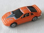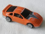 | Massstab | 1:60 |  schwarze, nicht durchsichtige Front- und Heckscheiben, Chrom-Interieur und angedeutete Targa-Dächer. Aufgesetzter Heckspoiler in Wagenfarbe. Vernietete Chrom-Kunststoff-Bodenplatte-Heckblende-Einheit. Auf der Motorhaube weiss-blau-dunkelblaue Pfeil-Streifen und ein weisser, englischer Text sowie Werbeaufdrucke. Auf dem Dach ein weisser Rahmen um die angedeuteten Targa-Dächer. Chrom-5-Steg-Felgen mit Hartplastikräder. Einfaches Kinderspielzeug als Die-Cast