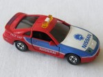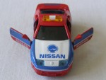 | Massstab | 1:60 |  durchsichtige Scheiben mit angedeuteten Targa-Dächer und schwarzem Rechtslenker-Interieur. 3-Farbenlackierung. Schwarze, vernietete Kunststoffbodenplatte. Aufgesetzter, roter Heckspoiler und Rückspiegel an der A-Säule angebracht. Zu öffnende Türen. Auf der weissen Motorhaube den blauen Aufdruck des Speedway-Logos und "Fuji International Speedway Fisco Nissan". Auf den Seiten den weissen Aufdruck "Nissan Pace Car". Auf dem Dach eine orange, eckige Lichtbar. Auf dem Heckspoiler den blauen Aufdruck "Nissan". Bläuliche Glasabdeckungen als Scheinwerfer. Chrom-4-Steg-Felgen mit Hartplastikräder. Standartmodell Japan Edition als Miniatur des offiziellen Pace Cars dieser Rennstrecke